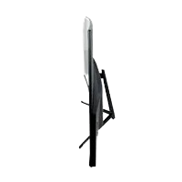 El diseño moderno sin bordes y su base metálica aportan estilo y estabilidad.